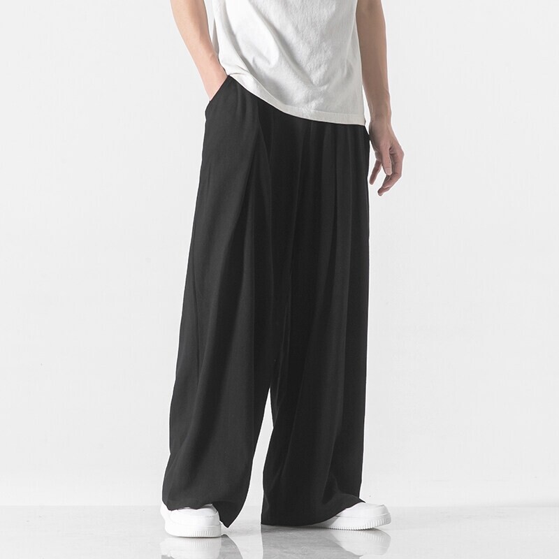 Celana Panjang Linen Katun Linen Pria Gaya Tiongkok Ukuran Besar Model Tipis Musim Panas 2025 Celana Kasual Harem Celana Kaki Lebar Lurus