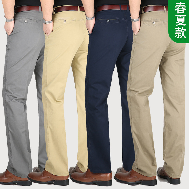Celana kasual musim semi dan panas pria setengah baya tipis dan tua celana pria pinggang tinggi lurus longgar bisnis katun kasual non-setrika celana panjang pria