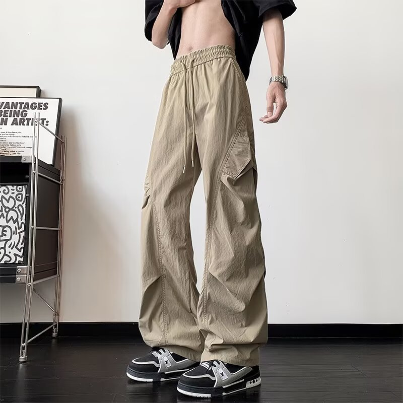 Celana Kerja Lipit Lurus Penerjun Payung Gaya Amerika Celana Kaki Lebar Longgar Cepat Kering Mudah Dipadu Padan Luar Ruangan Model Tipis Musim Panas Pria Celana Kasual