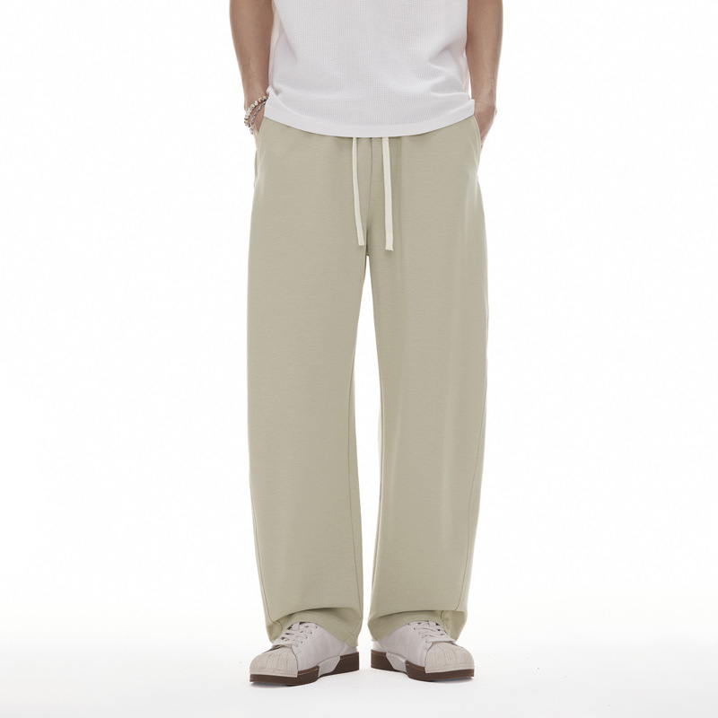 Celana Pria Celana Panjang Kasual Longgar Mudah Dipadu Padan Trendi Model Tipis Musim Panas Celana Wol Sutra Es AC Rasa Lurus Lurus Kaki Lebar