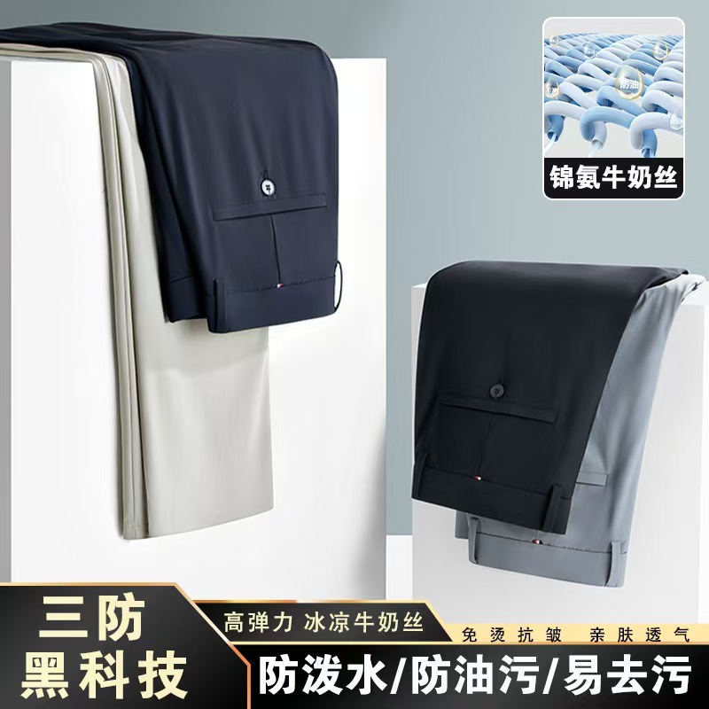Celana Pria Teknologi Tiga Anti Hitam Musim Panas Model Baru Elastis Tidak Tersetrika Sutra Es Amonia Brokat Bernapas Sutra Es Slip Lurus Celana Kasual Pria