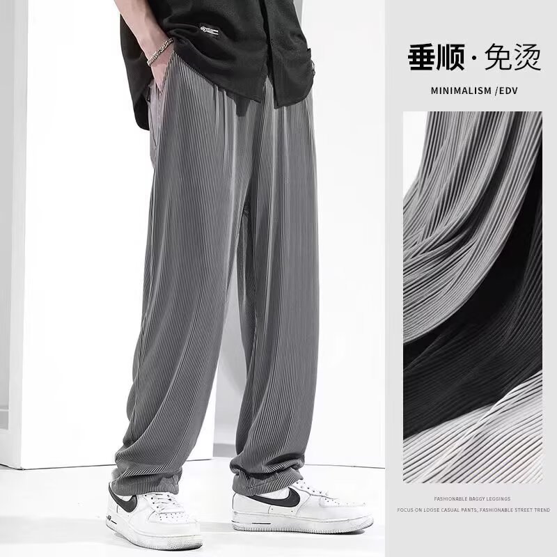 Celana pria musim panas tipis modis Semua cocok longgar kasual celana lebar kaki lurus tirai es sutra celana