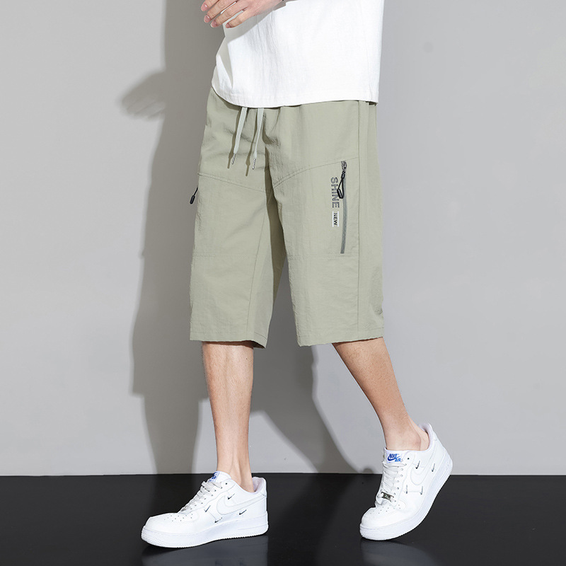 Celana pendek pria, Ice Silk sutra tipis bernapas laki-laki pantai olahraga longgar lurus cepat kering celana crop kasual musim panas