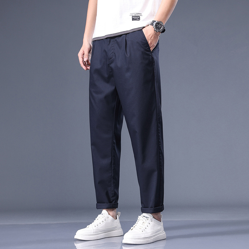 Celana Pria Celana Sembilan Persepuluh Musim Panas Sutra Es Cepat Kering Celana Olahraga Warna Polos Model Baru Celana Kasual Lurus Terlihat Kurus Longgar