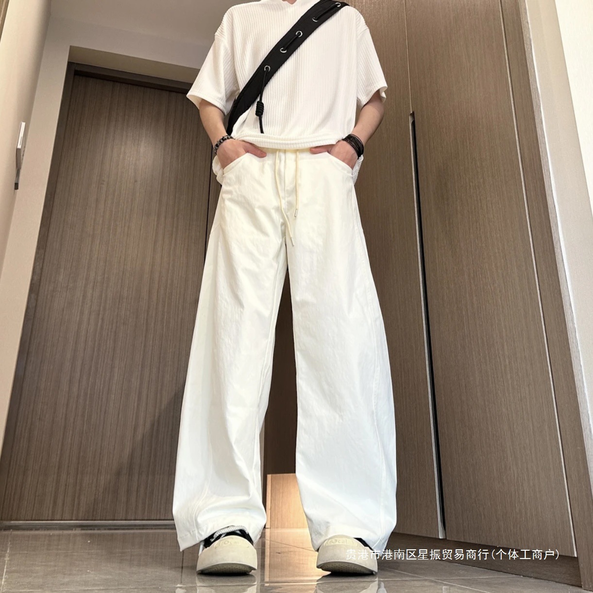 LKTM pakaian pria # musim panas gaya baru drop-down lurus longgar setelan celana kecil trendi pria lebar kaki mengepel setelan kasual celana