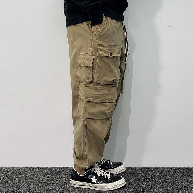 Celana Kamuflase Berat Celana Panjang Pria Pakaian Kerja Longgar Lebar Kaki Lebar Lipit Hiphop Merek Trendi Gaya Amerika Model Baru Musim Semi