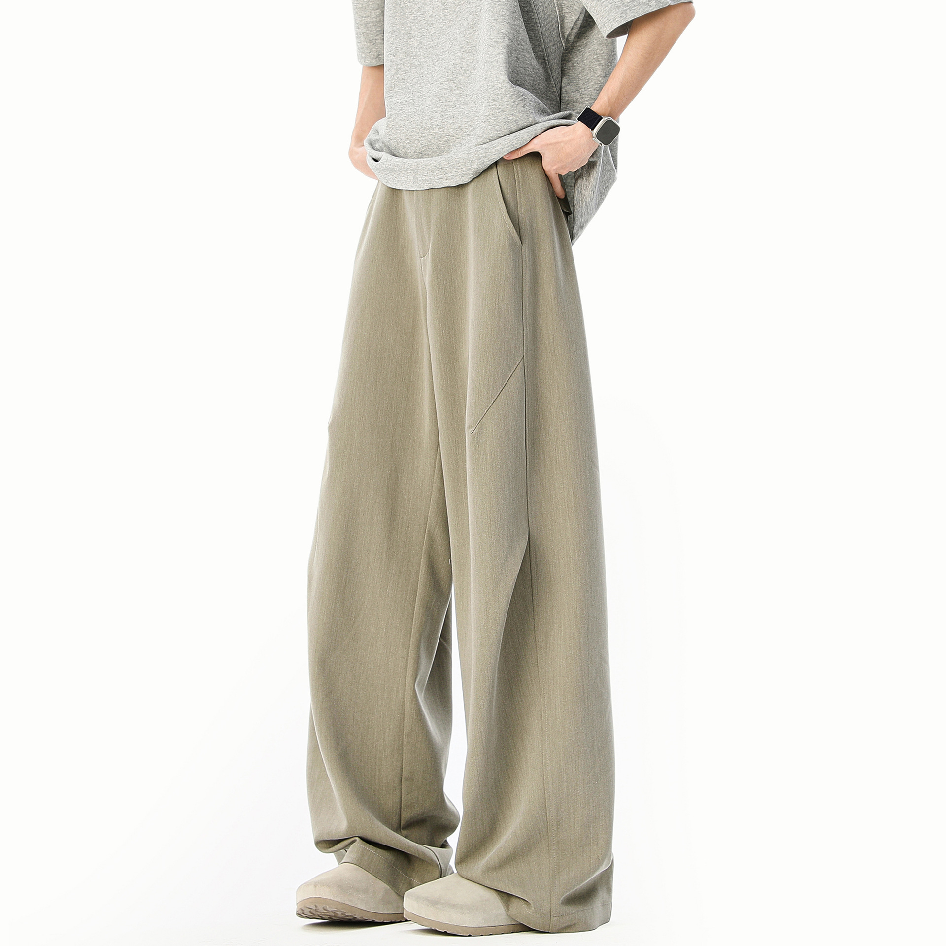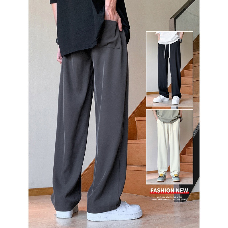 Celana Kasual Gaya Garam Kelas Atas Versi Korea Pria Celana Lurus Longgar INS Gaya Jatuh Model Tipis Musim Panas Celana Panjang Kaki Lebar