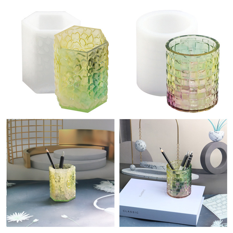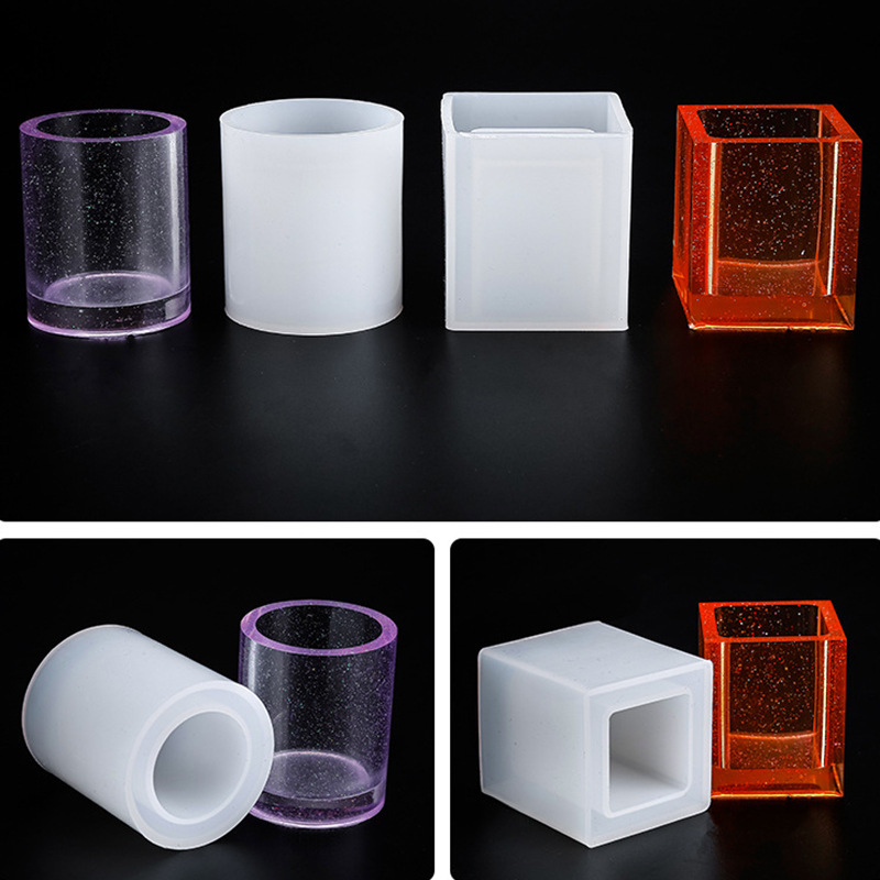 Kotak penyimpanan pemegang pena epoksi kristal, cetakan kubus silinder, lem AB epoksi kristal lintas batas
