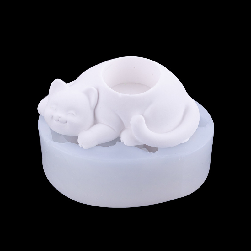 Kucing tidur silikon cetakan semen plester resin kerajinan DIY dekorasi rumah tempat pena penyimpanan cetakan plester