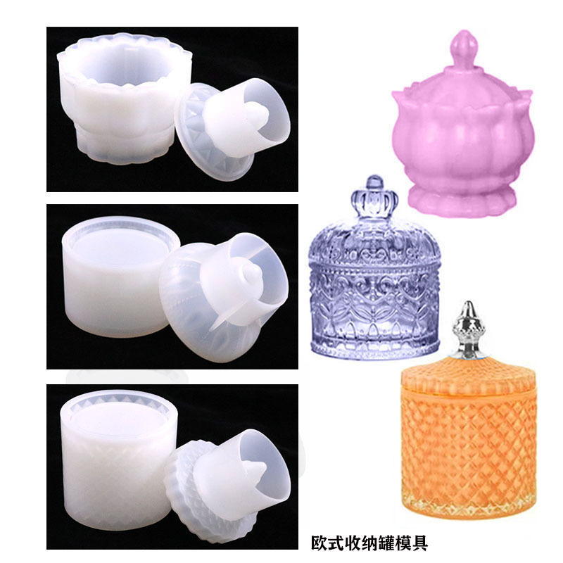 DIY lem kristal cetakan plester kotak penyimpanan perhiasan rias cetakan silikon toples penyimpanan permen Eropa