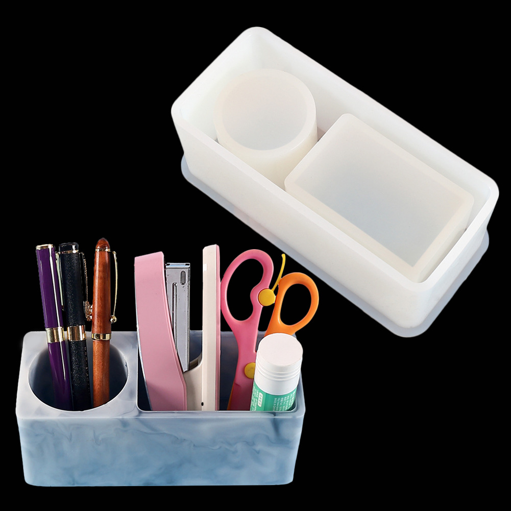 Kotak penyimpanan pena epoksi kristal DIY cetakan persegi bulat penyimpanan perhiasan Dekorasi desktop cetakan silikon