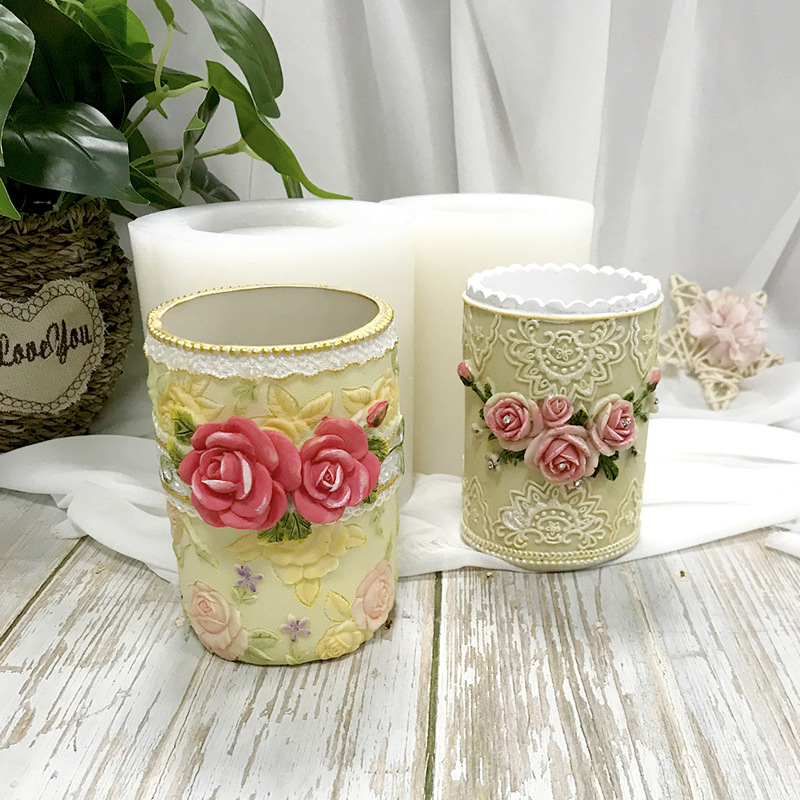 Model buatan tangan DIY Dekorasi resin epoksi cetakan silikon pemegang pena vas mawar mawar retro gaya Eropa