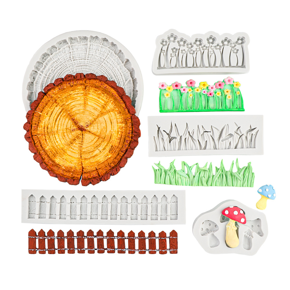 Cetakan Silikon Tumpukan Pohon Tumpukan Bunga Jamur Cetakan Aksesoris Mousse Cokelat Dekorasi Kue Rumput