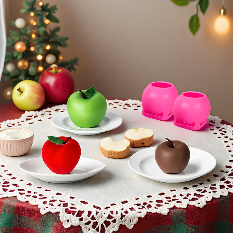 Cetakan silikon mousse apel Natal, cetakan lilin coklat, Mousse buah Perancis, malam Natal