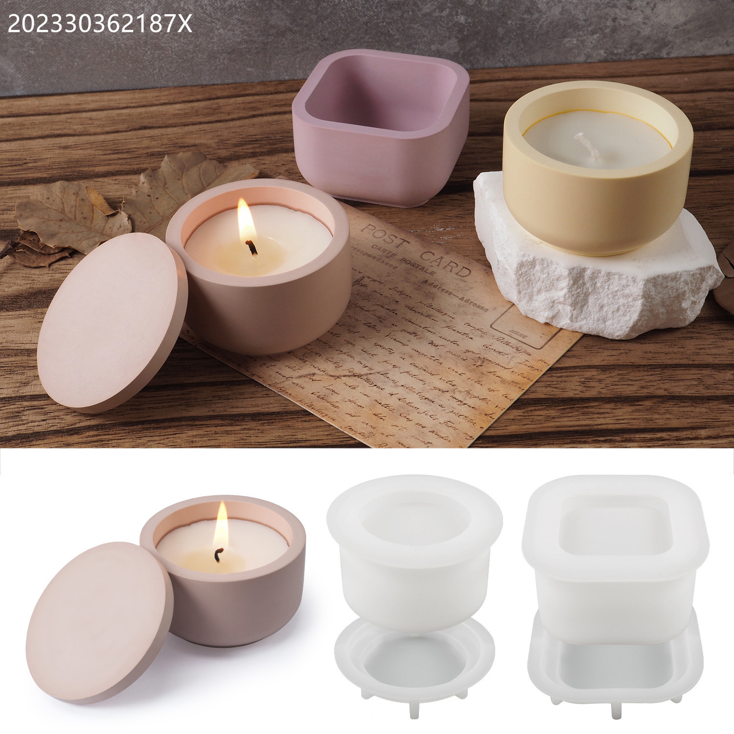 Cangkir semen epoksi kristal diy, cangkir lilin plester tidak rata lava dengan dekorasi tutup cetakan silikon cermin