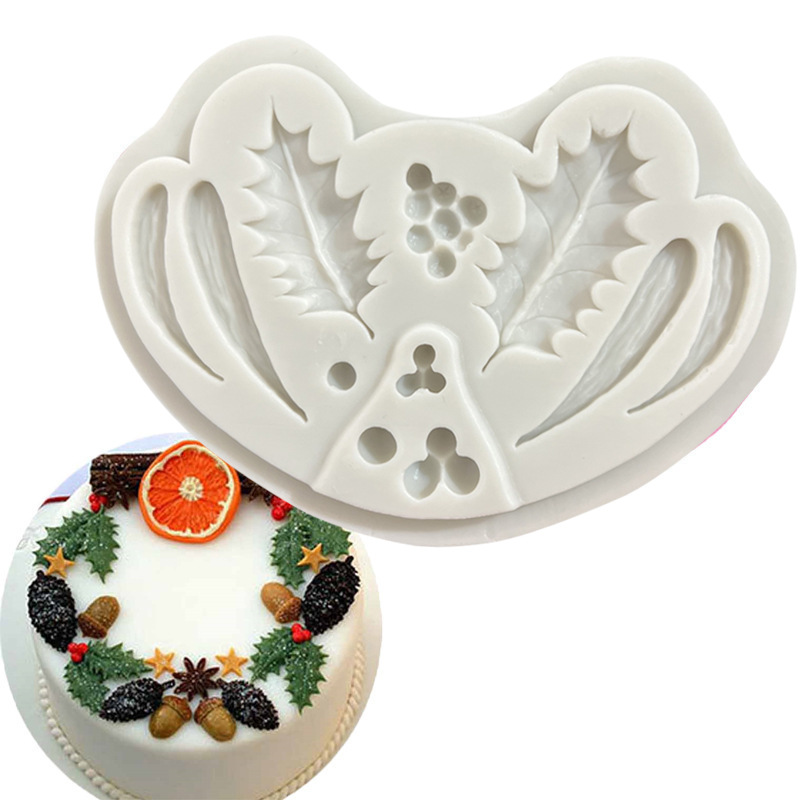 Cetakan silikon buah Natal daun holly cetakan permen coklat cetakan dekorasi kue fondant