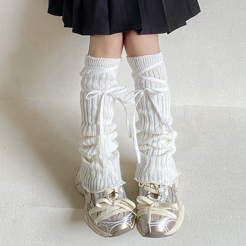 女童堆堆袜套春秋绑带交叉长筒纯色日系洛丽塔秋冬保暖护腿小腿袜