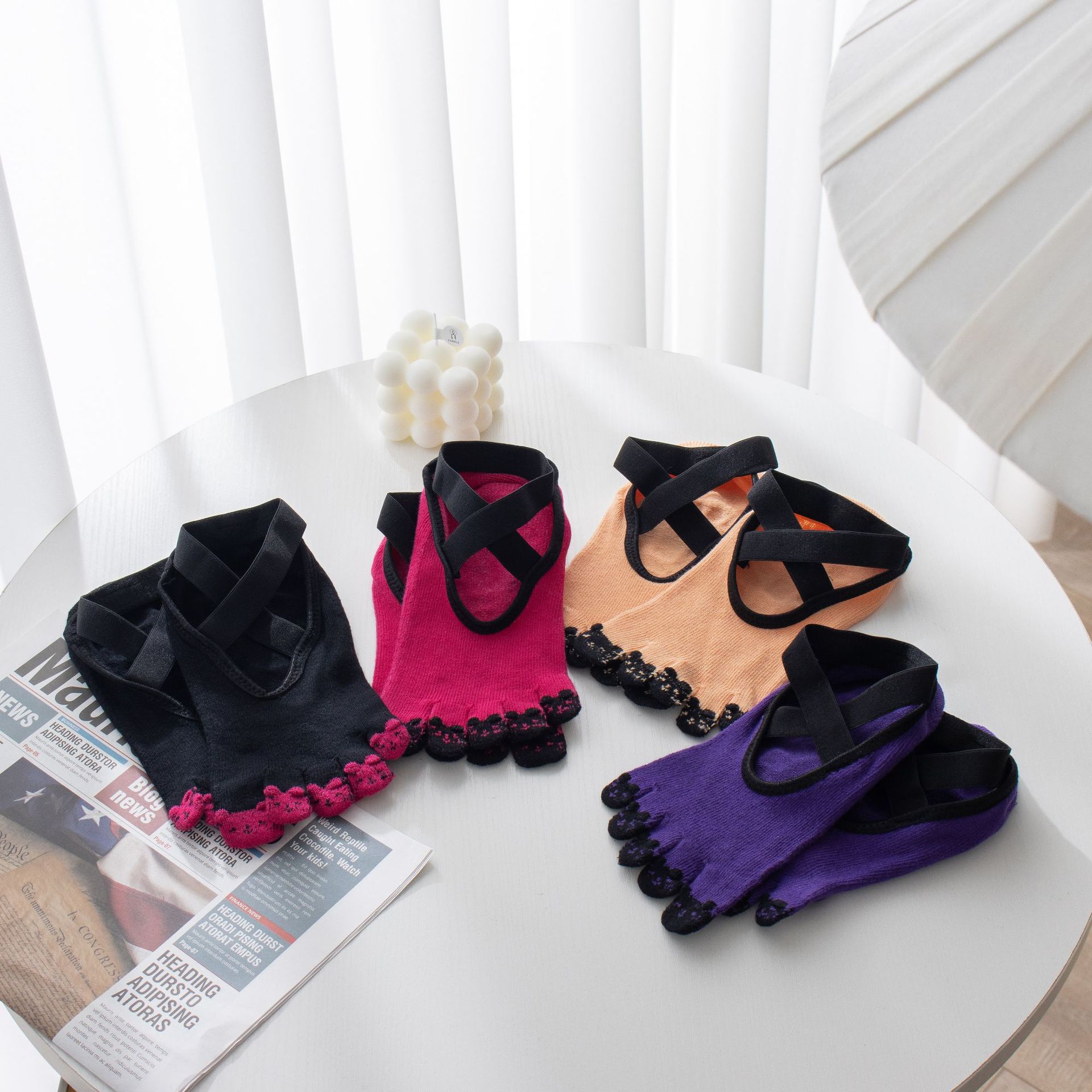 Kaus kaki yoga berenda lima jari renda baru 2022 kaus kaki lantai punggung terbuka olahraga Pilates antiselip profesional wanita