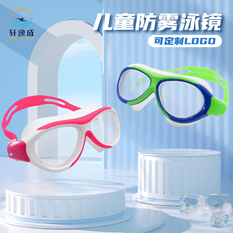Kacamata Renang Bingkai Besar Anak-anak Berlapis HD Tahan Air Kacamata Renang Anti Kabut Kacamata Renang Pelatihan Anak-anak Tanpa Kabut Dapat Diset LOGO