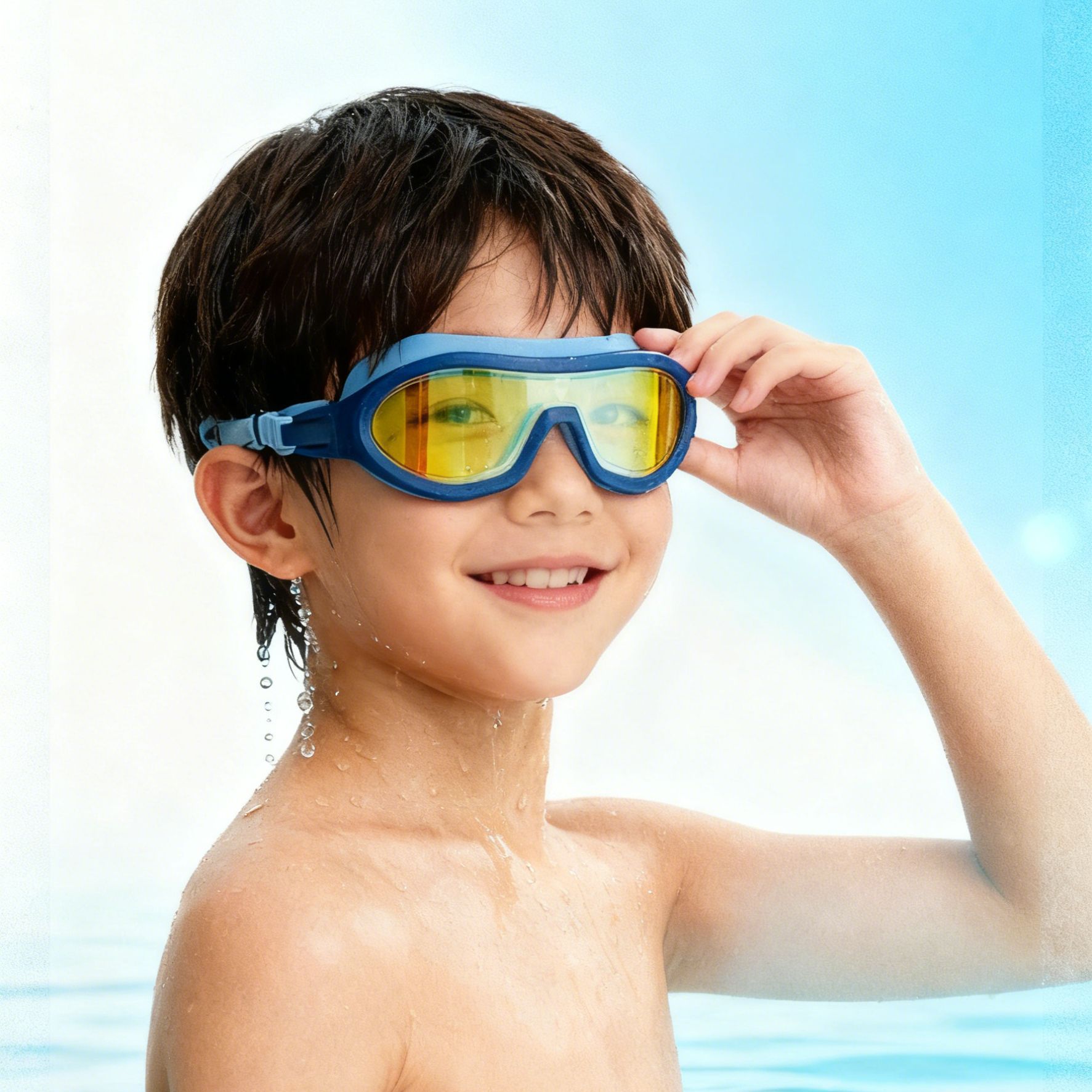 Kacamata renang anak laki-laki perempuan, lensa mata renang bingkai besar anti kabut, peralatan profesional nyaman untuk menyelam