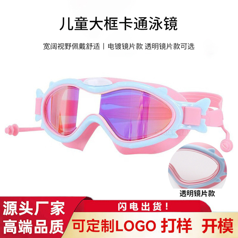 Kacamata renang elektroplating, 19 anak-anak bingkai besar HD tahan air anti-kabut warna-warni tahan UV pabrik kacamata renang