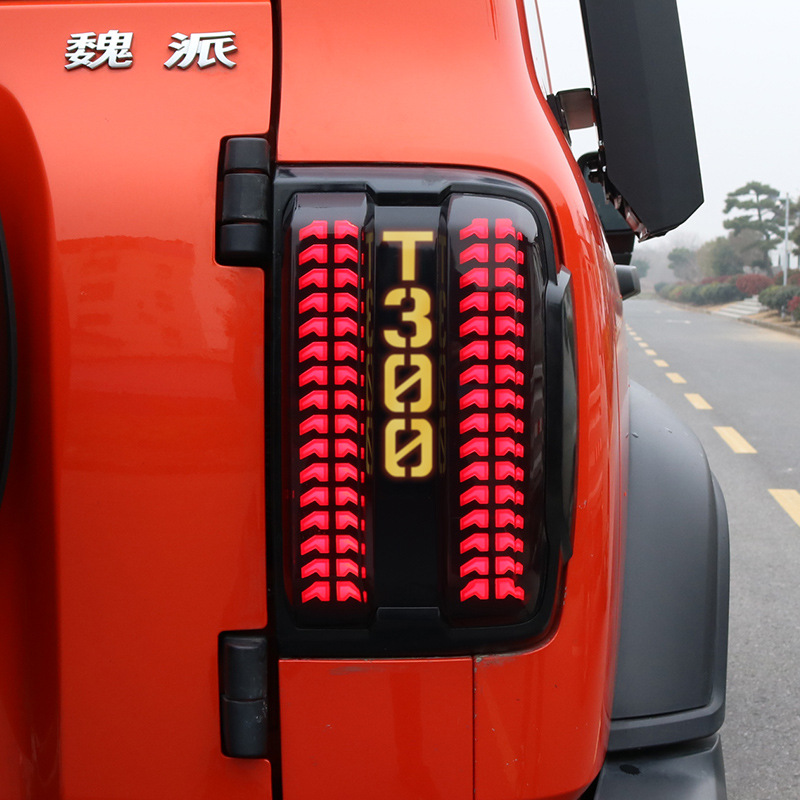 Berlaku untuk Wei Pai tangki 300 dimodifikasi, rakitan lampu belakang hitam streamer LED off-road bingkai kap lampu modifikasi tanpa kehilangan