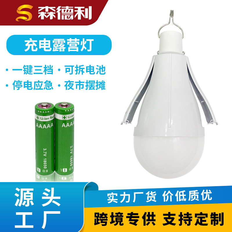 Lampu Kemah baterai ganda dapat dilepas led, lampu dc bohlam baterai ganda dapat diisi ulang, lampu berkemah kait peredupan tiga gigi