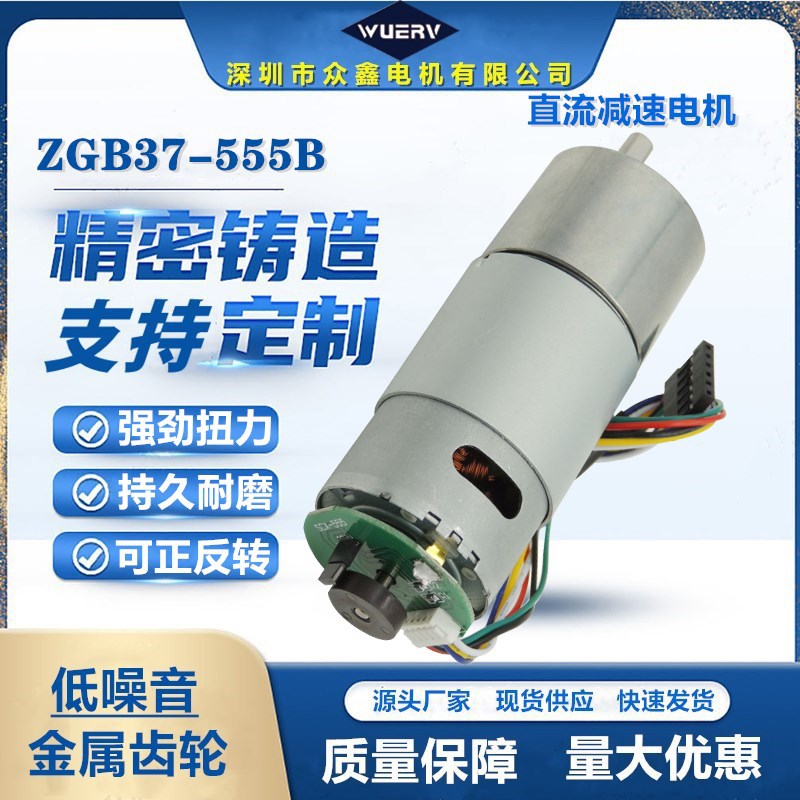 ZGB37-555B DC gear motor Hall encoder 12V24V, motor kecepatan dapat disesuaikan torsi besar kebisingan rendah