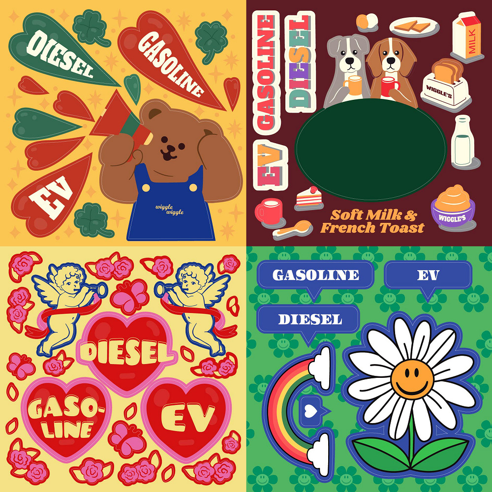 Stiker dekorasi gaya Korea, stiker bunga matahari seri beruang coklat kecil super lucu tablet IPAD bahan DIY