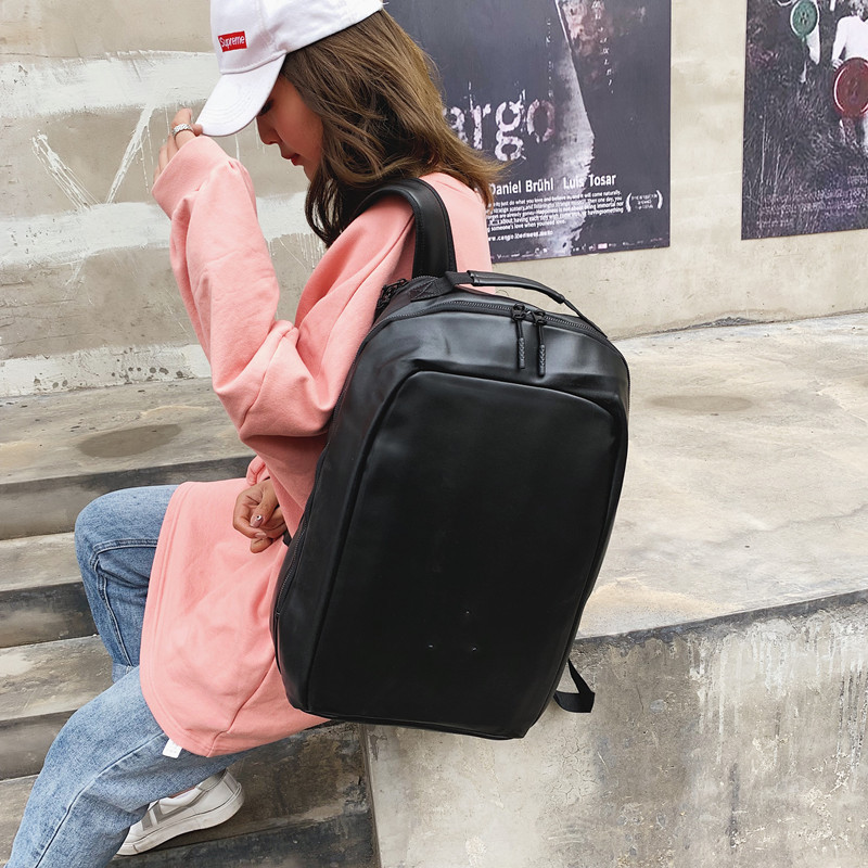 潮流双肩包男款时尚简约PU电脑背包大容量学生书包户外旅行双肩包