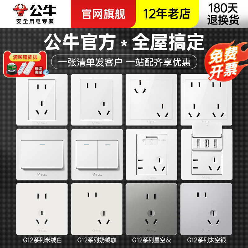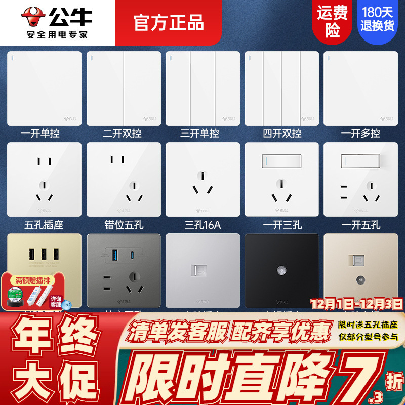 Bull switch soket, grosir panel lima lubang 86 jenis dinding tersembunyi rumah tangga 5 lubang soket usb barang asli batch