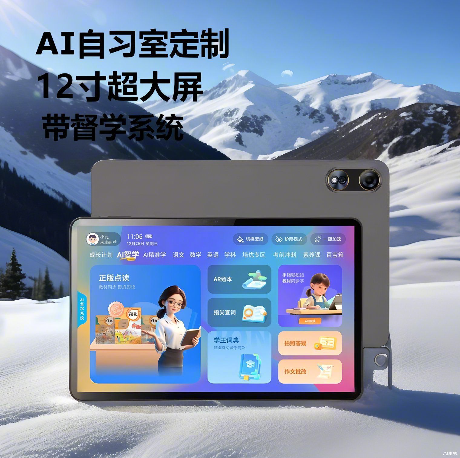 AI Ruang Belajar Komputer Tablet 12 Inci Bahan Pengajaran Sinkronisasi AI Mesin Pembelajaran Tablet Layar Super Besar Mesin Belajar Tablet Model Baru