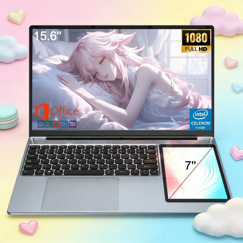 15.6 7 inch N100 layar sentuh layar ganda portabel permainan kantor bisnis laptop HL156D