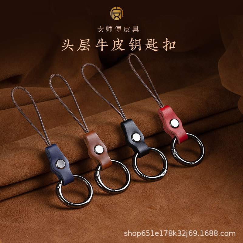 Gantungan Kunci Mobil Lapisan Kepala Kulit Sapi Asli Sederhana Tali Wanita Gantung Pinggang Cincin Musim Semi Cincin Lilin Tahan aus Anti Hilang Pasangan Penciptaan