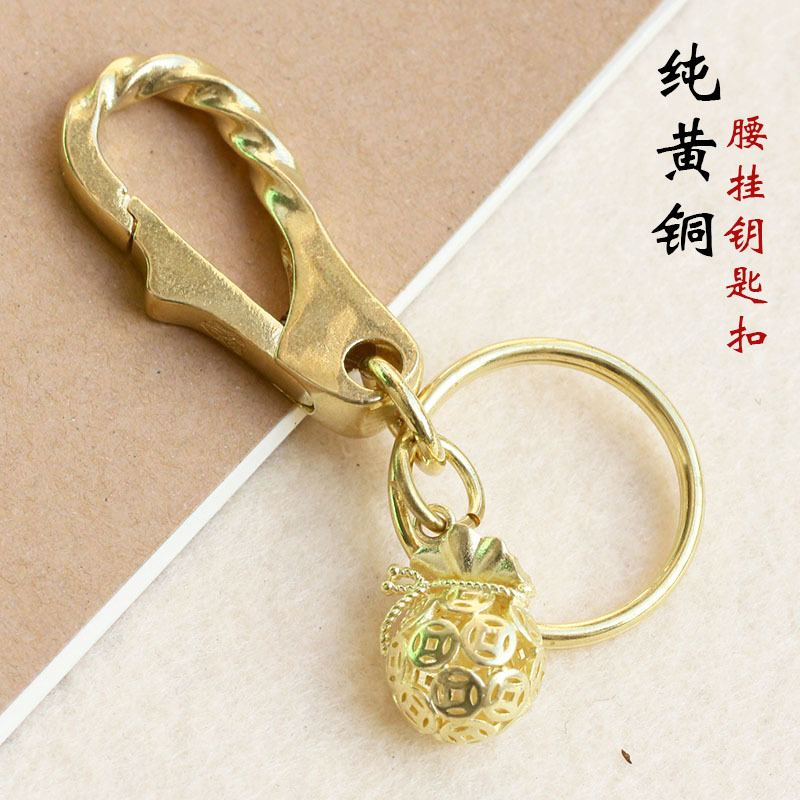 Gantungan kunci kuningan pribadi kreatif, gantungan kunci kuningan sederhana, gantungan kunci mobil logam pinggang pria