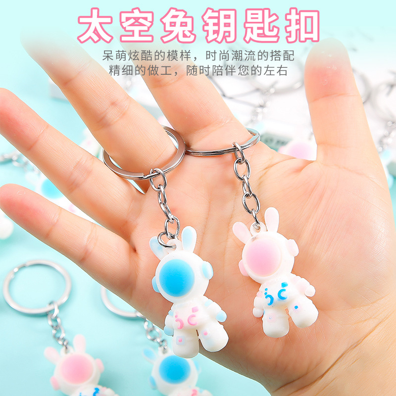 Anak-anak kartun ruang kelinci gantungan kunci mobil lucu kreatif ransel liontin astronot tas ornamen hadiah kecil