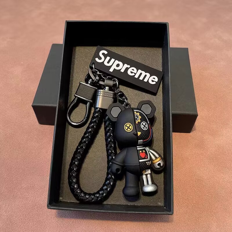 Gantungan kunci mobil Beruang mekanis, gantungan kunci mobil kartun tiga dimensi, ornamen tas modis kreatif