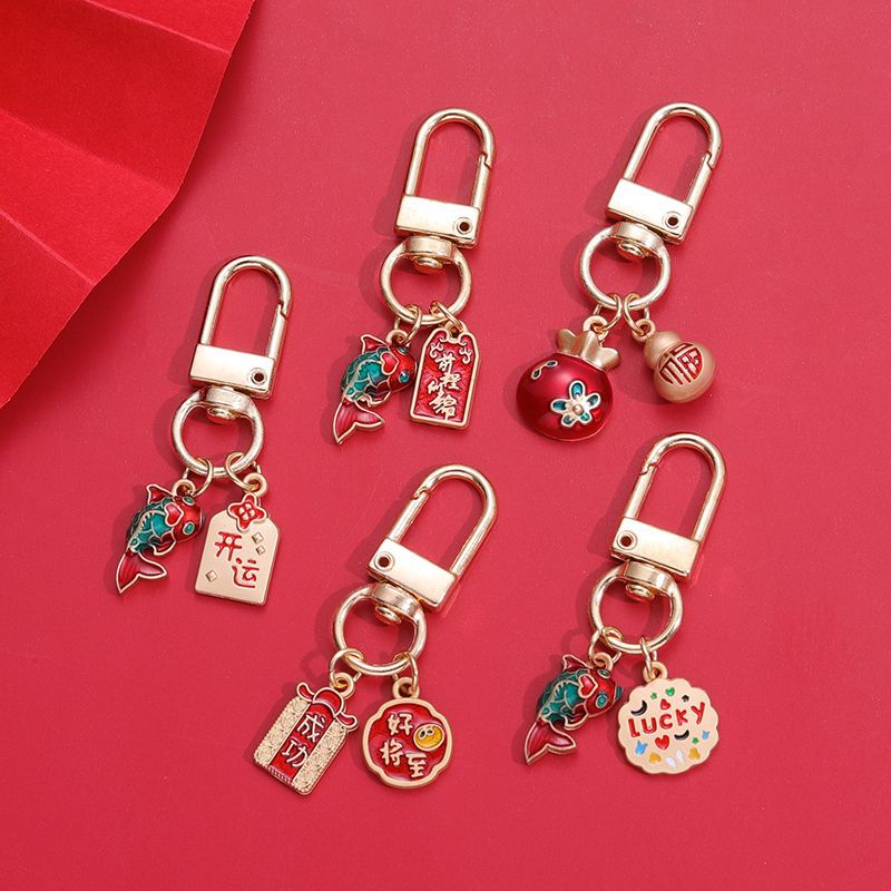 Gantungan kunci keberuntungan ikan mas gaya nasional, Aksesori liontin kunci mobil tas sekolah siswa salam teks kreatif dipersonalisasi