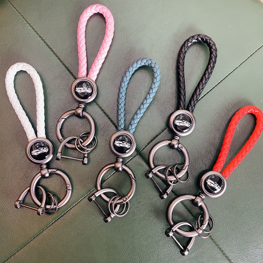 Gantungan kunci mobil anyaman tangan kreatif gantungan kunci mobil kulit gantungan kunci logam pasangan liontin kecil grosir
