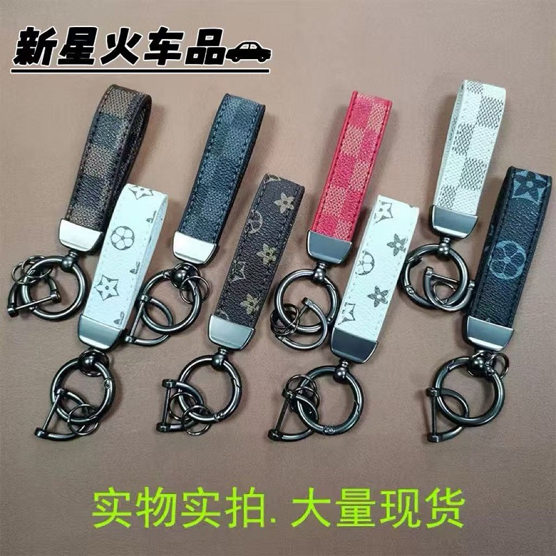 Gantungan kunci mobil kulit kotak-kotak, gantungan kunci mobil kulit kreatif, liontin tali kulit, aksesori rumah tangga multifungsi, hadiah anti hilang