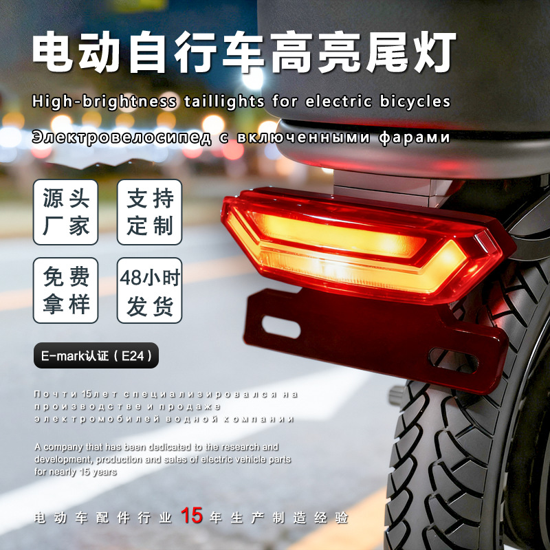 Lampu belakang sepeda listrik lipat, lampu berkendara, lampu rem, lampu rem sepeda listrik LED, anti-tabrakan.