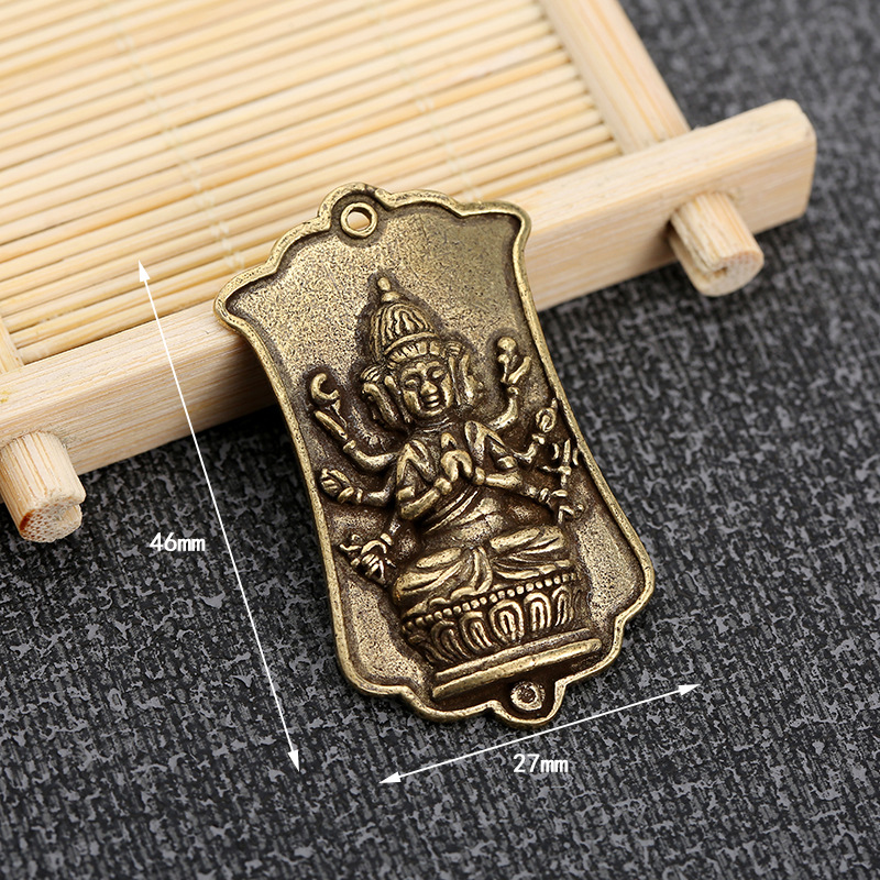Grosir Baru Dekorasi kuningan retro gantungan kunci mobil liontin patung Buddha tag gaya kuno dipersonalisasi liontin emas