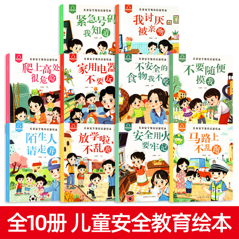 Buku gambar pencerahan pendidikan anak-anak versi audio set lengkap 10 buku cerita seri pelindung diri pembelajaran 3-4-