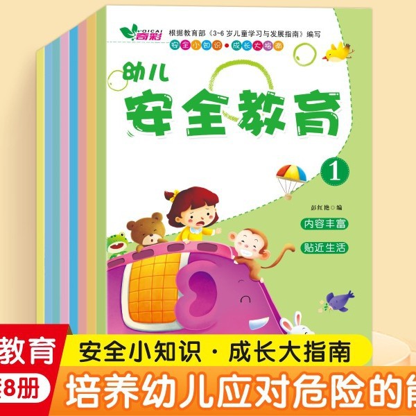 Buku gambar sampul keras kesadaran keselamatan taman kanak-kanak audio Bilingual penuh 8 volume besar, buku gambar cangkang keras Kelas sedang dan kecil