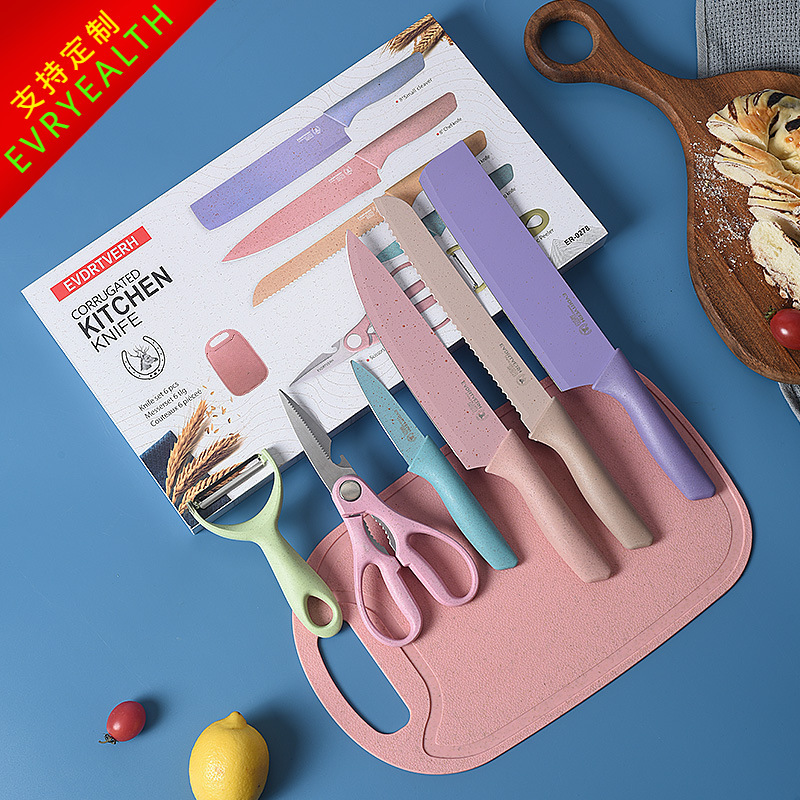 Pisau hadiah dapur, 7 buah pisau baja tahan karat Yangjiang, set pisau jerami gandum koki, set pisau warna 6 buah