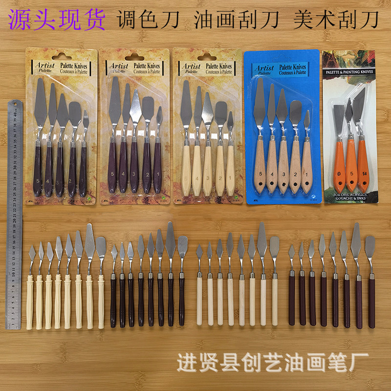 Pengeruk lukisan minyak pisau berbagai palet, pengeruk seni lukis minyak pegangan kayu