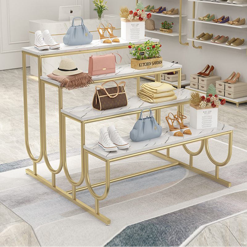 Rak display toko pakaian sepatu dan tas store meja lari Pulau Tengah Stan tampilan tinggi dan rendah rak sepatu rak Tampilan berdiri penggunaan komersial