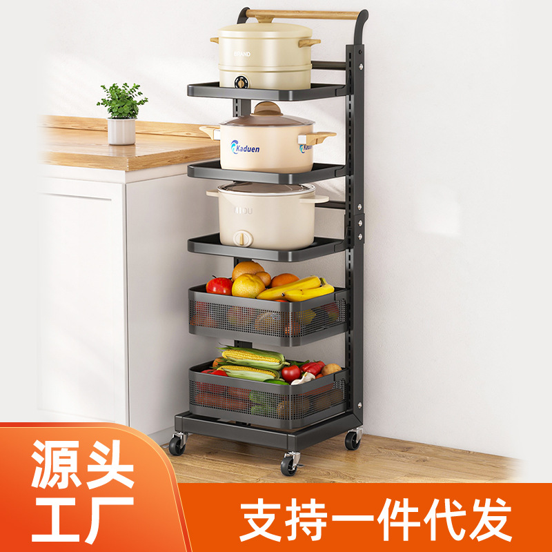 Rak panci lantai, lintas batas multi-fungsi rak panci lantai katrol tinggi dapat disesuaikan rak panci penggorengan multi-lapisan rak penyimpanan
