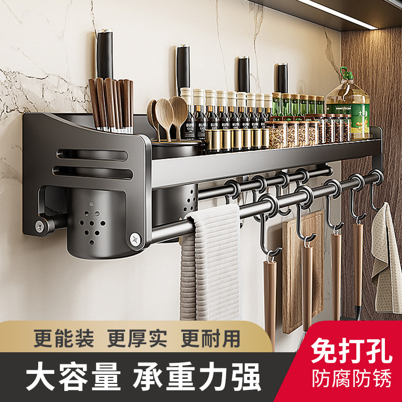 Rak penyimpan bumbu dapur, rak penyimpanan lengkap rumah tangga multifungsi, rak bumbu dipasang di dinding bebas lubang