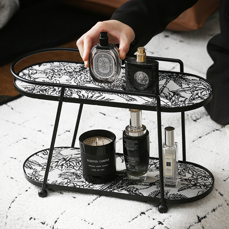 Rak penyimpanan kamar mandi seni besi, rak penyimpanan kosmetik kamar mandi, rak produk perawatan kulit, rak penyimpanan pengatur parfum meja